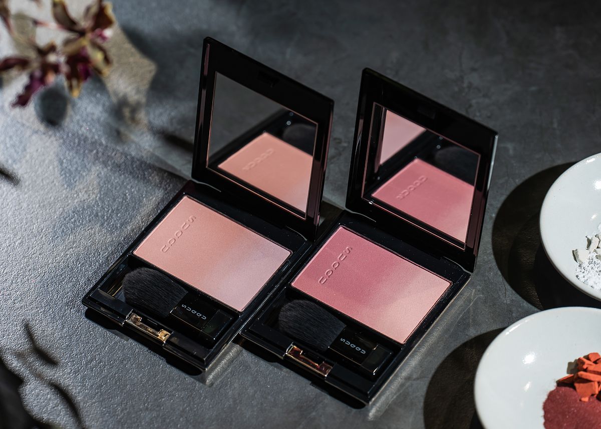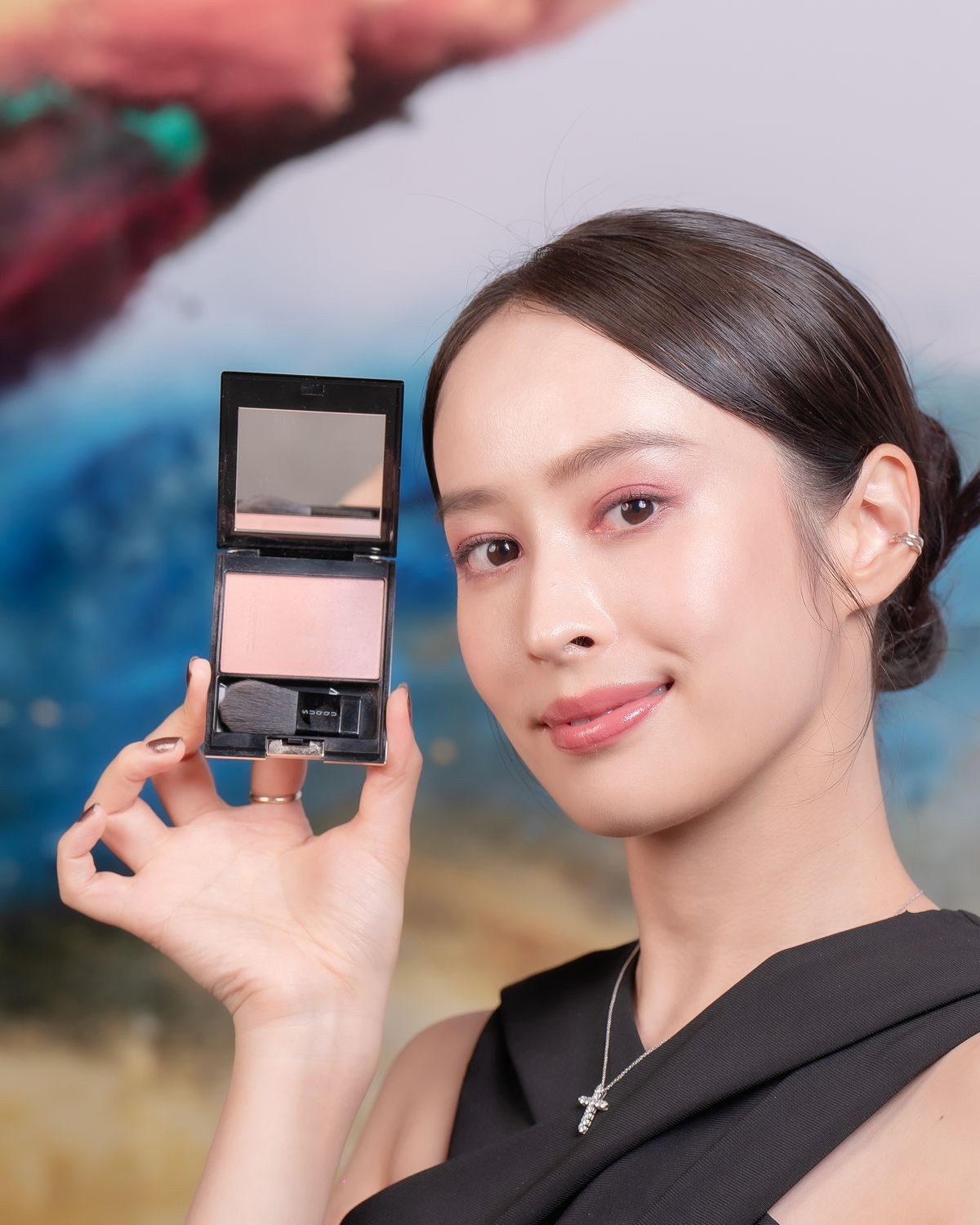 暖色調且高純度顯色的頰彩,搭配具透明感光澤的打亮色,