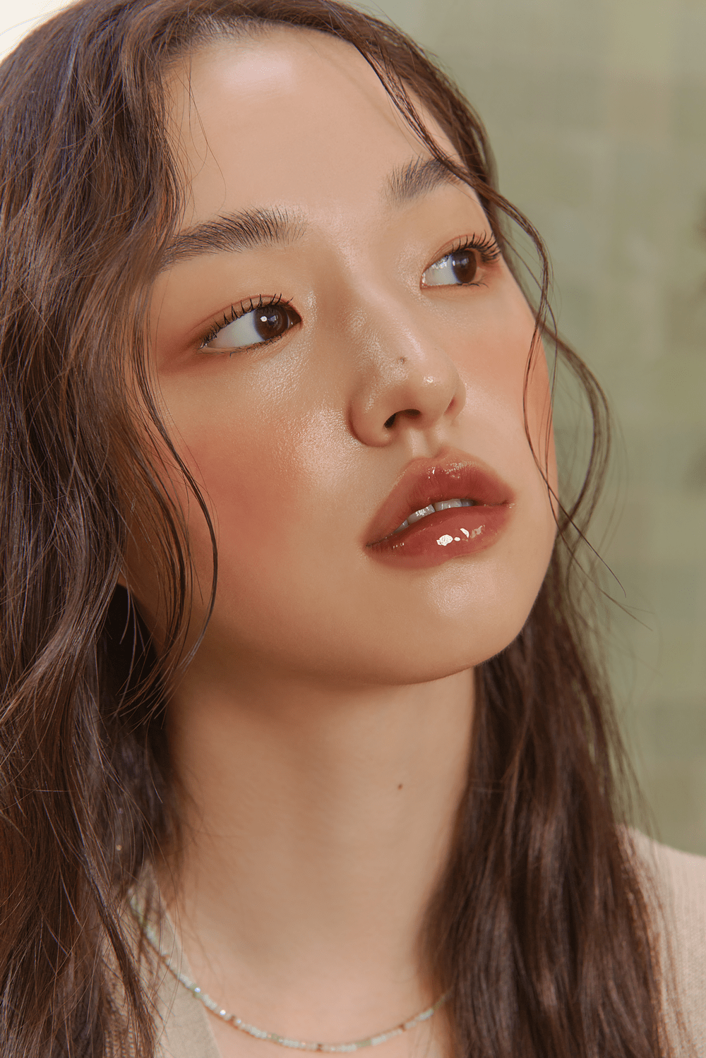 這部分重點在於「局部」,先完成基本的清透底妝後,使用水光感的打亮產品,局部點綴於眼頭、山根、鼻頭、眉下、顴骨、下巴,創造出肌膚自然透出的健康光澤,微微透出肌膚紋理更顯自在慵懶感。