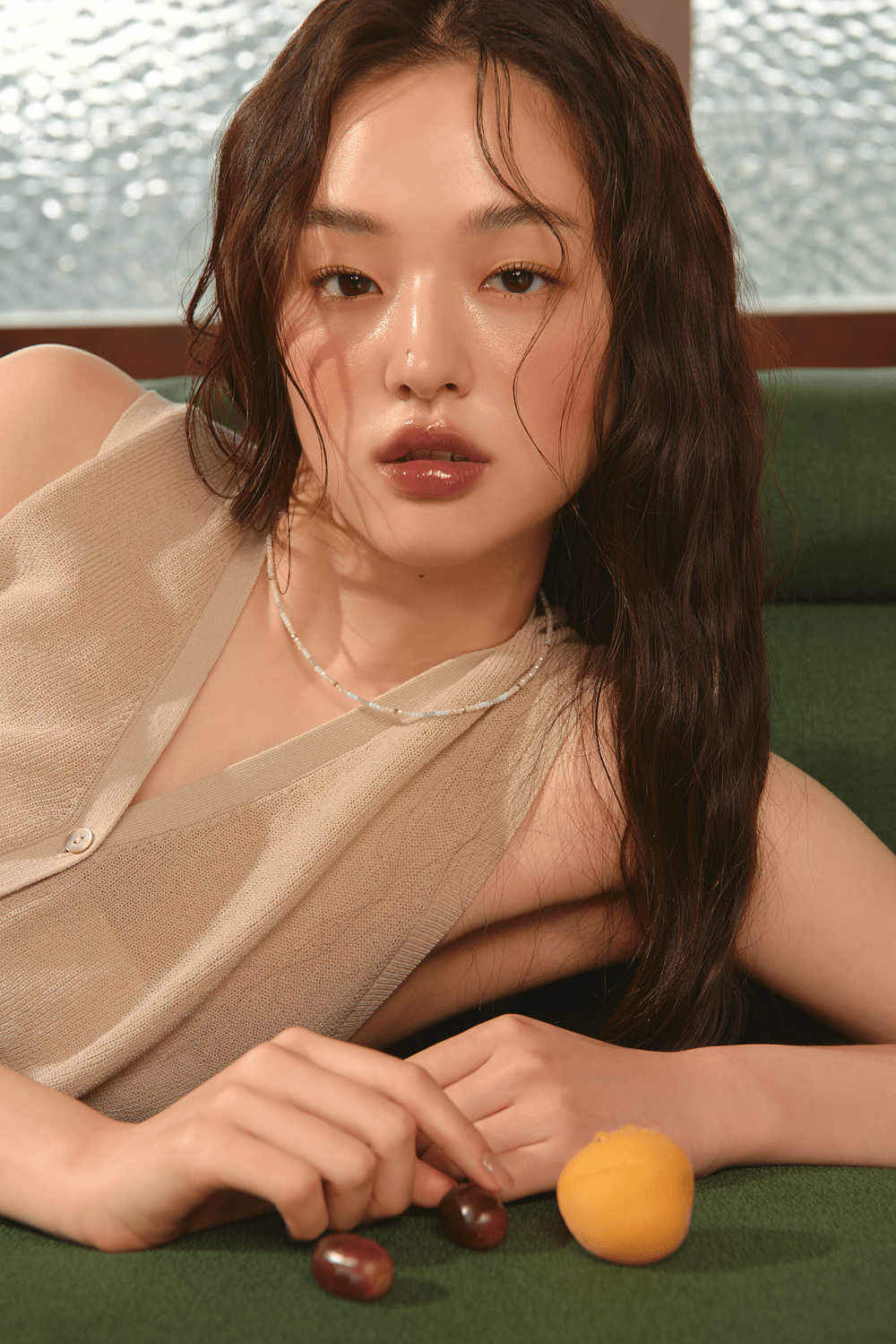 完成了妝容,如果想更強調整體風格,髮絲是加分第一題!不刻意的自然微捲、不小心掉落在臉龐的髮絲都可以替整體增加慵懶感。有把握的話,使用透明髮膠做出微微濕髮的造型,也能替整體風格再加分。