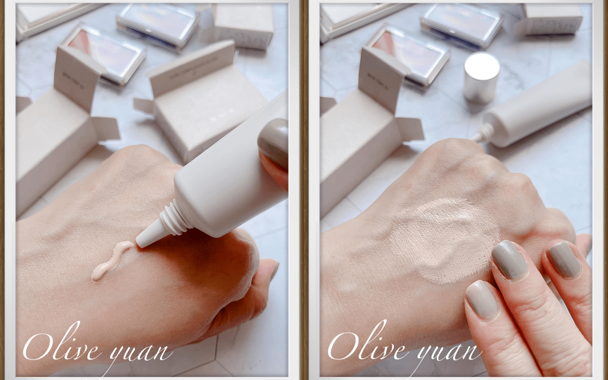 其中的水性成分與「煥膚美肌面膜」共通,像是西洋梨果汁發酵菁華、鼠尾草菁華及維他命C誘導體等,讓肌膚水潤。另外還有毫無粉感的“細微顏料”,不厚重才能透光,還有皮脂吸附粉末防止脫妝等,我入手的是01明亮膚色調,另外還有02自然敷色調,但兩色都很自然,而且軟管好方便。