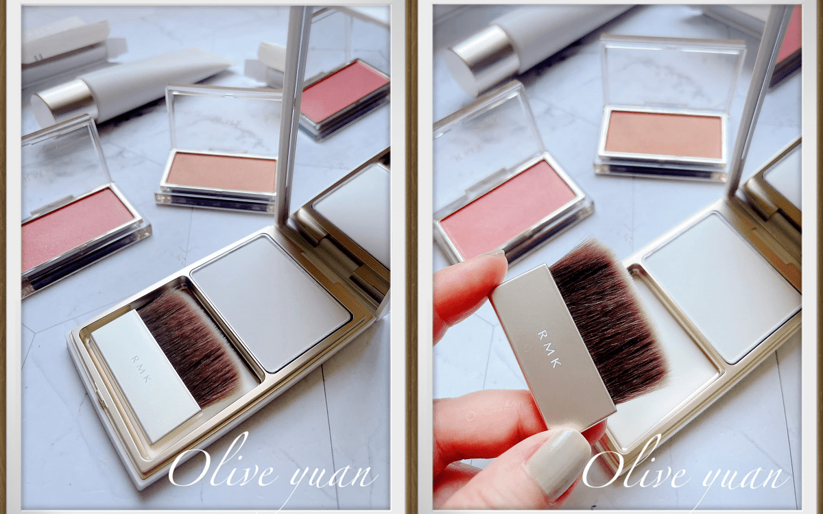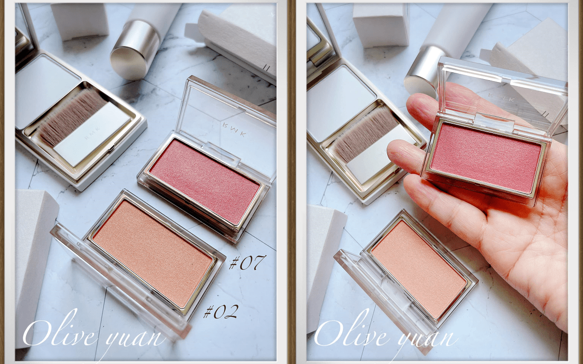這次入手的02屬於帶黃感的琥珀橙色調,可刷出健康活潑感,也可以當成修容餅使用,另一款07屬於帶有溫暖氛圍的玫瑰裸色調,有點成熟華麗,這兩色風格完全不同,而且RMK腮紅還有個特色就是~不上妝時使用也很自然!