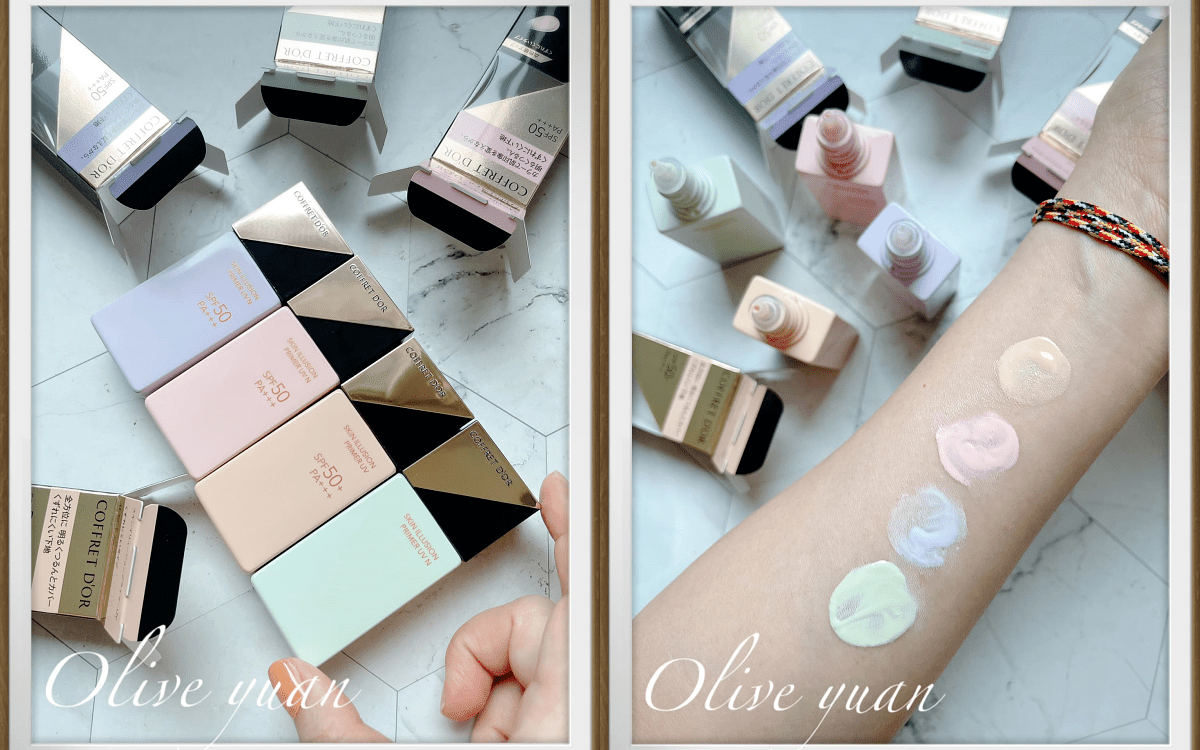 「COFFRET D’OR光燦晶透UV飾底美肌乳(SPF50+ PA+++ NT1,050)」在2020年就已經推出了,主要是BEIGE常態色,產品特色為“高遮瑕力”,後來再推出3款不同顏色、不同妝感,用來對應各種不同肌膚問題的美肌乳,所以現在有4色。