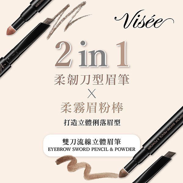 柔韌滑順的刀型眉筆&輕盈柔霧的眉粉2 in 1