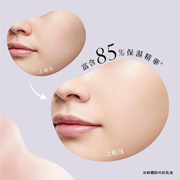 ● 添加85%美容精華*1。高保濕效果,能長時間維持奶油肌的潤澤柔光粧感。(*1粉體除外的乳液)