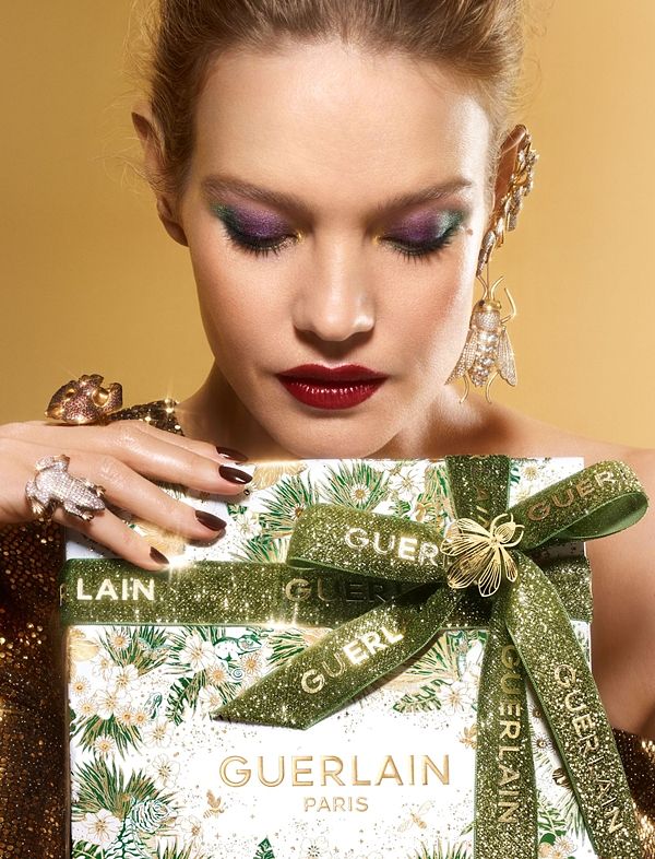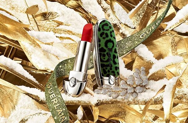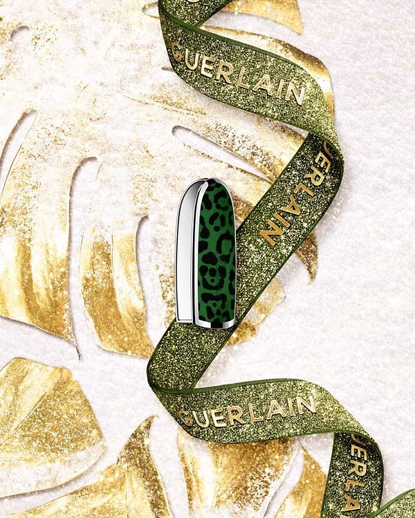 充滿節慶氛圍、精緻無比的作品,每個珠寶飾品上的280顆水鑽都是由藝術家於伊斯坦堡工作坊的工匠親手貼上。唇膏彩殼輕覆著絨布豹紋麂皮,帶著聖誕系列的綠色,並放置於精緻的珠寶盒中更顯奢華,ROUGE G紅寶之吻高訂鑽鑲蜂印套組搭配3種Rouge G紅寶之吻經典色號:永恆不敗的霧面藍色基調880紅寶石色、緞面清新優雅03 木玫瑰色、緞面高顯色214紅磚色,都是唇膏收藏家的必備色號!