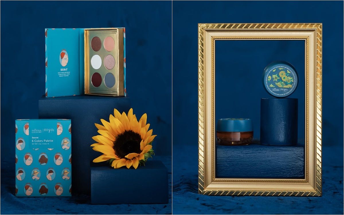 如同美術館所展示之經典雋永,《 FreshO2 X THE NATIONAL GALLERY 》完美詮釋蒐藏級夢幻單品,包含3款值得收藏的畫作眼影盤:梵谷永遠經典的向日葵6色眼影盤、雷諾瓦一直在划船少女們6色眼影盤、秀拉巴黎的阿尼埃爾浴場6色眼影盤;以及3款限定色梵谷經典向日葵絨霧唇泥,另外還有梵谷搖曳的絲柏樹校色蜜粉餅、梵谷經典絲柏樹棉花糖粉撲雙入組,再搭配上典藏珠釦隨身化妝包。全系列大肆激盪內在藝術因子,超越收藏型態的絕佳畫作,帶來彩妝全新撼動,汲取繪畫謬思與美感,外包裝選用立體壓紋呈現出獨特手感,雅致畫框突顯視覺度,搭配典雅色澤結合,帶你進入一場藝術結合彩妝的視覺饗宴;全系列9款典藏聖品,於2023年10月25日 (三) 10:00開展販售。