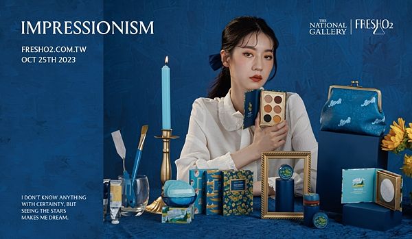 台灣彩妝品牌FreshO2,每年都以突破性挑戰為品牌創下重要里程碑,今年夏天以1,500間店點目標,正式跨足至日本彩妝通路;秋日之際再度將美妝與藝術突破時空界線,不僅是橫跨世紀,更跨越9,800公里的距離,與英國倫敦開館近兩百年的《國家美術館The National Gallery》史詩級曠世巨作聯手,結合藝術影響力的印象派大師梵谷、雷諾瓦、秀拉與塞尚共同揮灑色彩,透過世界知名畫作將時尚X藝術X彩妝,挹注無限可能的潑撒與發揮。