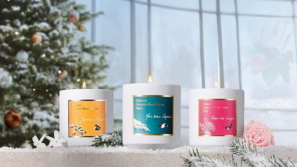 Maison Francis Kurkdjian 香氛蠟燭為迷人的節慶裝飾點睛。 除了令人陶醉的香氣,它們還照亮了整個光影世界。 蠟燭的火焰隨著微風舞動輕輕搖曳,營造出溫馨舒適的氛圍。