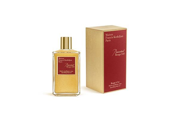 Maison Francis Kurkdjian 閃亮身體油融合了杏仁油、澳洲堅果油和摩洛哥堅果油。這些堅果油以其卓越的保濕功效與24 K黃金粉末混合一起,為全新的香氛儀式注入了珍貴元素的魔法