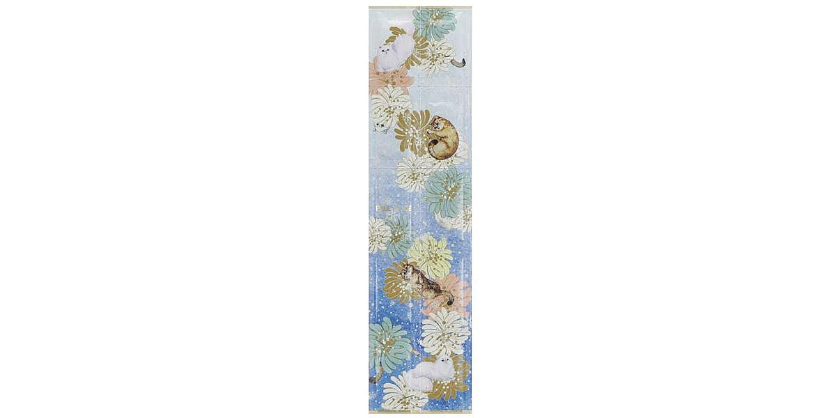 ● 大耳狗喜拿、牛奶、小黃鳥、小白貓 Gipsy、小棕貓 Nounette戴上相配的紫色蝴蝶結,在西洋菊花田裡開心的聊天,享受彼此的陪伴。