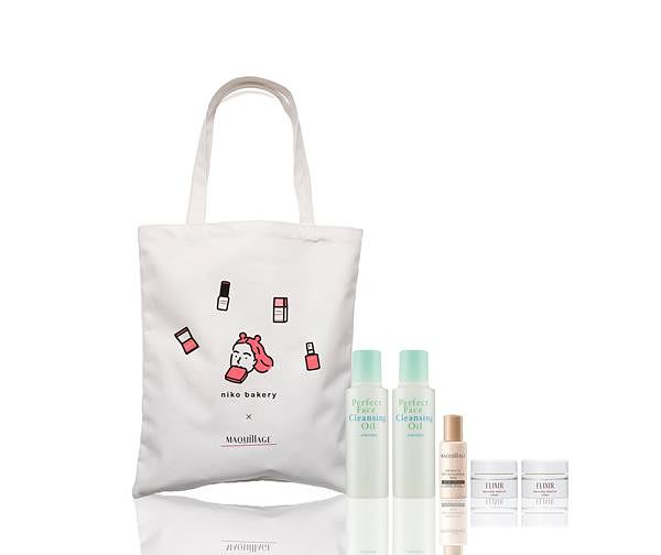 贈 MAQuillAGE心機彩粧 x niko bakery日香聯名帆布袋 1個、 MAQuillAGE心機彩粧 星魅平衡持粧控粧前乳NEO 8ml、資生堂 深層水淨化潔顏油 40ml x 2、 ELIXIR怡麗絲爾 彈潤爆水珍珠霜5g x 2
