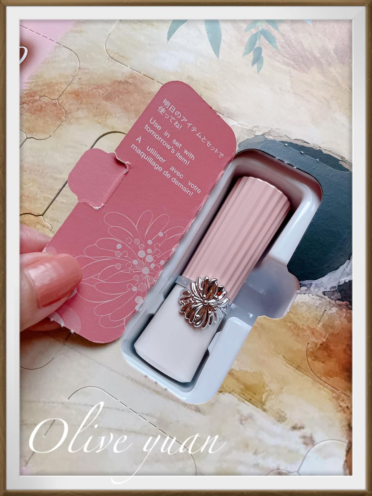 再來「21」小小的,好好奇內容物喔!結果是可愛CC的「限量熊先生護唇膏」,小鐵盒華麗珠光護唇膏,可單獨使用或搭配唇彩,然後「22」是限量唇膏盒,中間的立體設計,如同將西洋菊圖案變成戒指一般,好美喔!