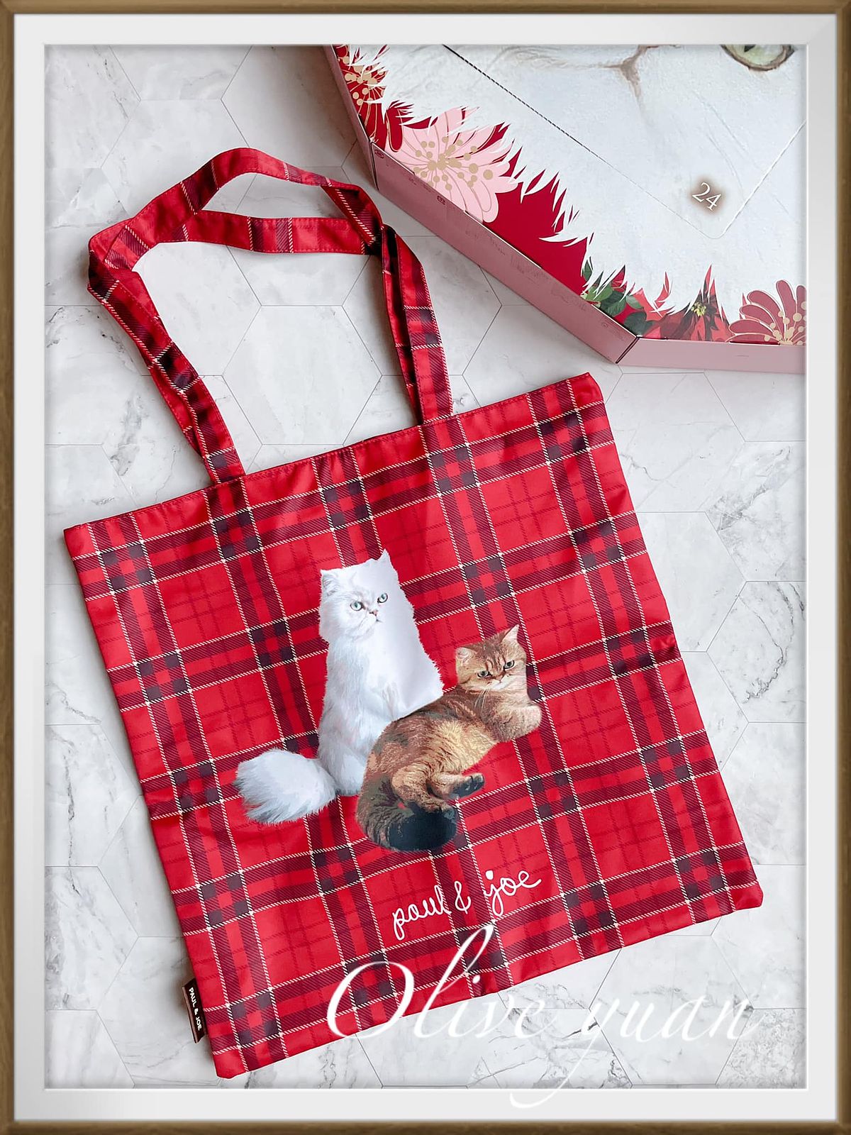 那麼~各位有沒有發現「24」怎麼不見了!?原來「24」是最“大”的驚喜,所以設計在背面Gipsy的臉上,內容物是「英倫學院貓大型托特包」!Gipsy與Nounette可以陪你到處玩,光是這包包就很值得入手了吧!