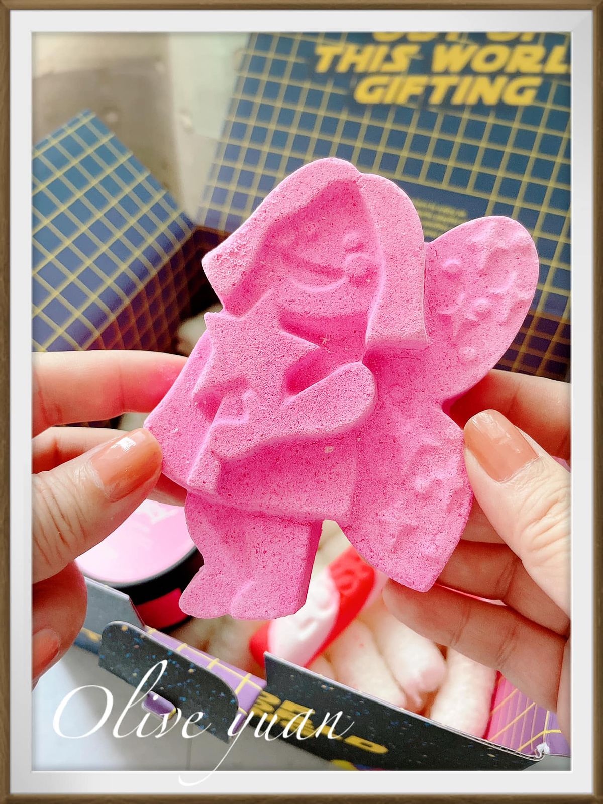 「飄雪仙子汽泡彈(NT240)」,雪天使換新裝,帶來90年代的懷舊氣息,而且它是象徵愛心、勇氣和自信的粉紅飄雪仙子,除了泡泡糖香,成分中還有「波斯青檸精油」。如果買球型汽泡彈,我都會敲成兩半使用比較省,但這飄雪仙子我可捨不得呀!