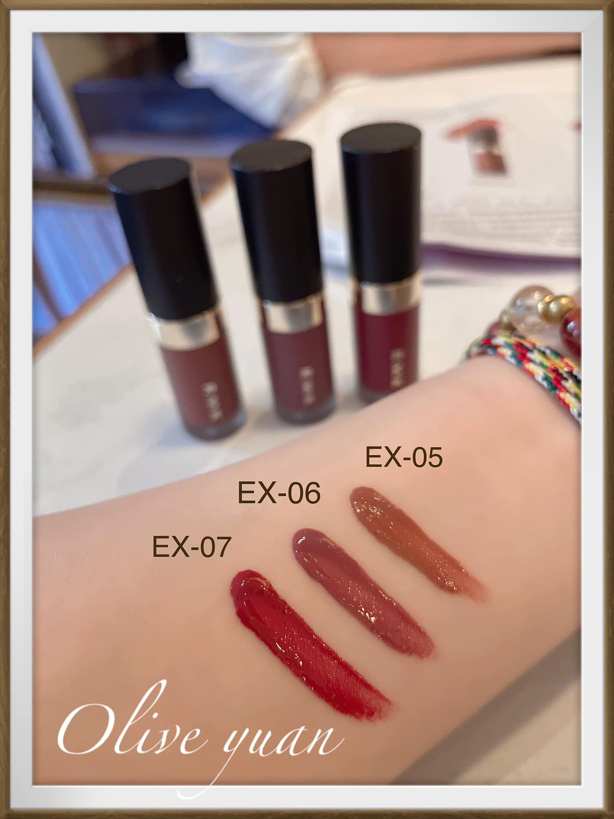我入手的EX-07 Royal Claret屬於略帶微微暗感的波爾多酒紅色調,但因為這款唇釉為具透明感且鮮豔發色的質感,所以看起來很暗~但上唇後非常可愛性感,應該是我近期最喜歡的一款唇彩,感覺另外2色應該也很清新。