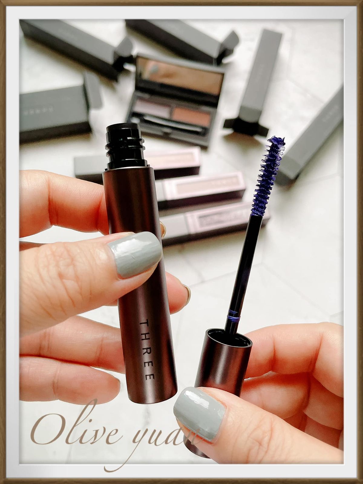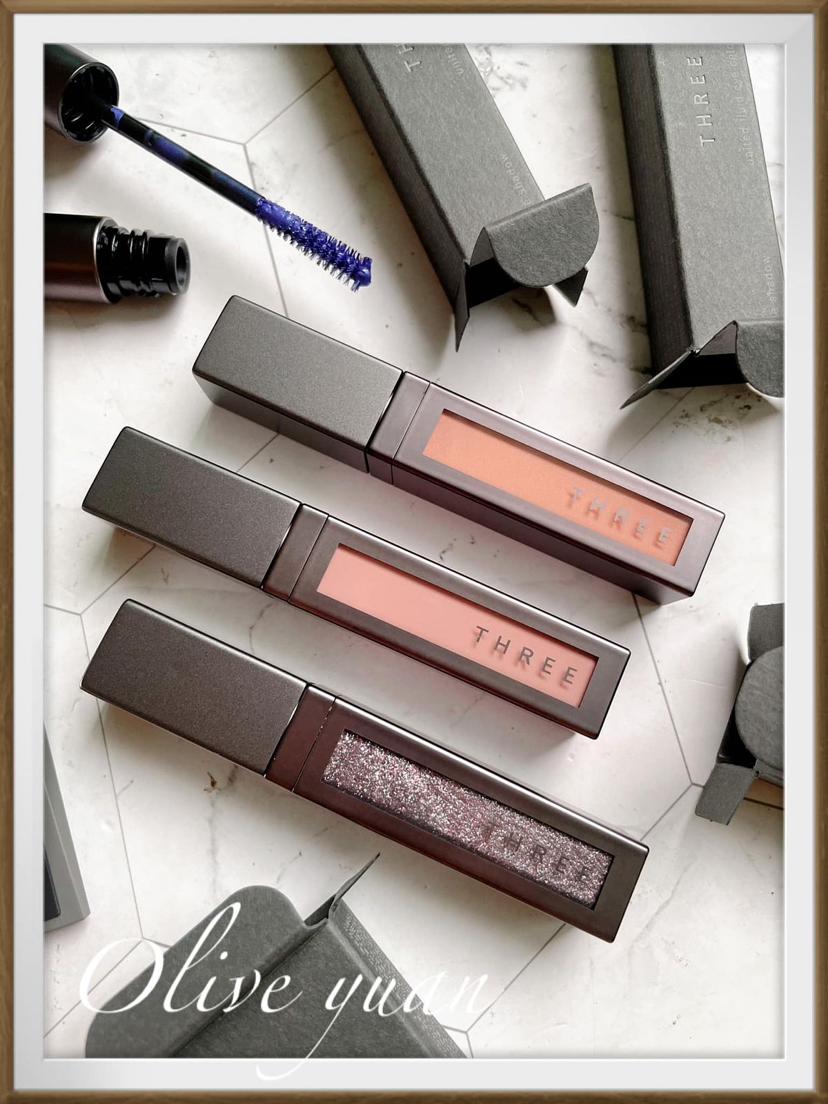 我入手的是04 NEW SENSATION,是非常漂亮的魅惑藍調,刷頭很特別,是THREE獨創的混合兩種刷毛T字寬廣刷頭,連根部都能刷得漂亮,還兼具纖長、濃密、捲翹又根根分明,而且THREE連睫毛膏也都會添加植物油。