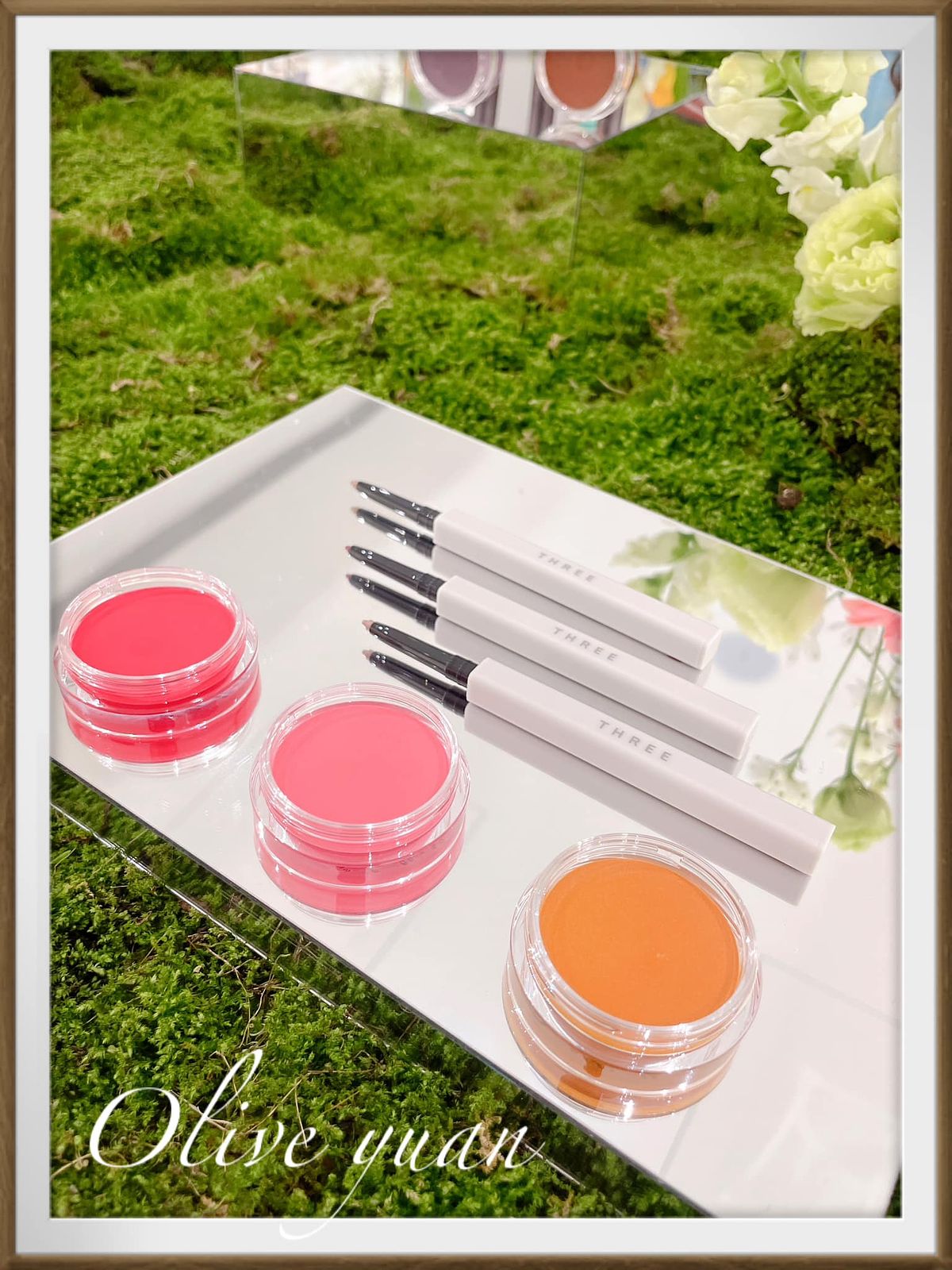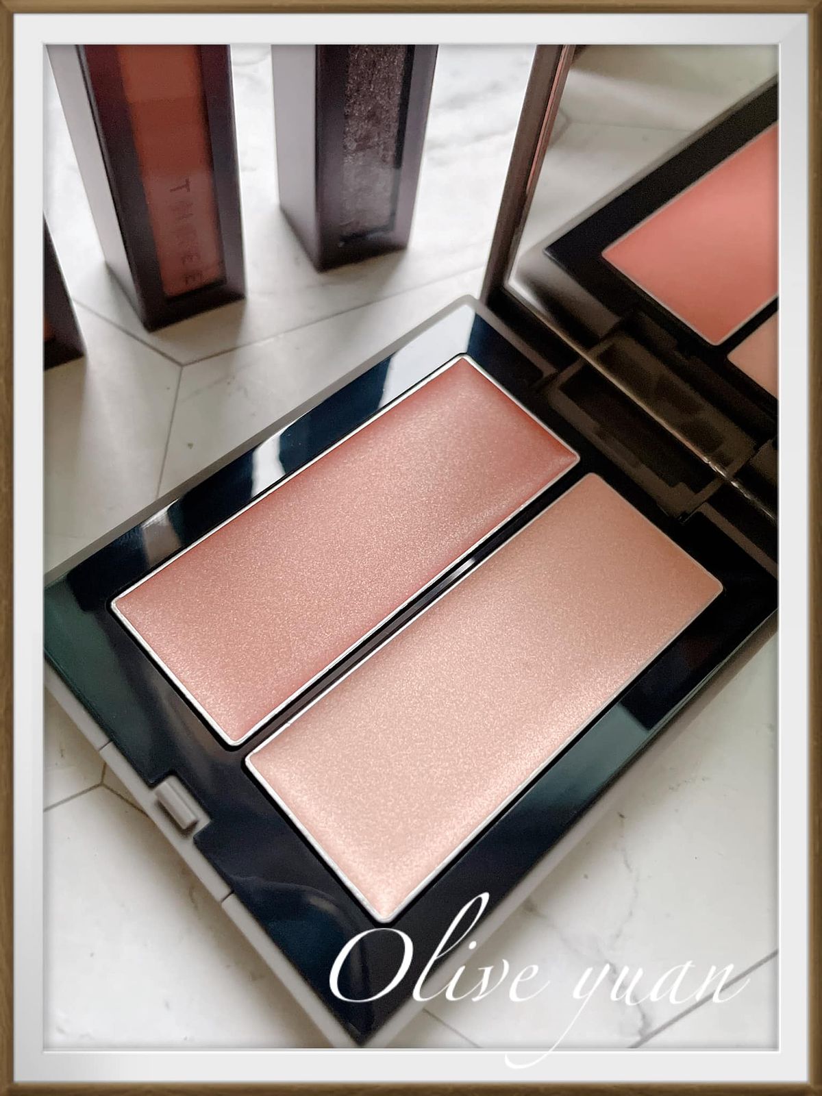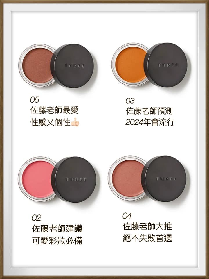 這是THREE底妝中的代表性商品,左邊是蜜桃粉潤采色,能營造清新的紅潤氣色,右邊是珊瑚粉亮膚色,能呈現柔美光燦,2色疊擦~加上霜狀會轉化為粉狀後,那種光澤感、血色感、透明感,就如同清新明亮的原肌之美。