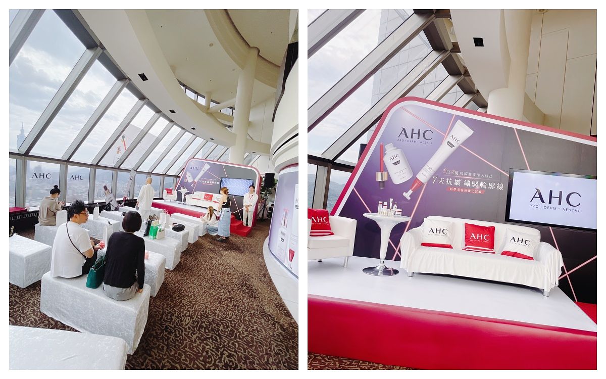 AHC醫美科研雙波新品發表會,在遠東香格里拉飯店38F─「馬可波羅酒廊」舉行,這邊最棒的景色就是可以遠眺101,現場佈置以紅白為主,而且AHC全球形象大使為『絕世網紅』的朴圭瑛,大家都有看吧!