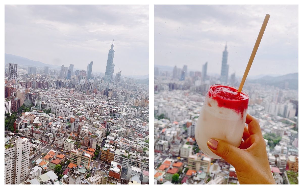 活動當天爆雨又爆熱,所以入口處可馬上現領一杯椰奶覆盆莓冰飲,邊喝邊欣賞高空景色。