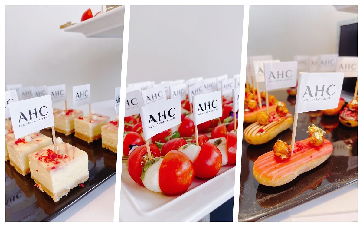凱鈞老師除了幫Model示範產品,還分享了AHC共通成分“四型胜肽”,主要是以四種100%近似人體的膠原蛋白,所以除了親膚好吸收,還能更快感受到效果,再來還有「法國紅藻萃取」,能平滑、細緻,產生女神光!全系列都有添加。