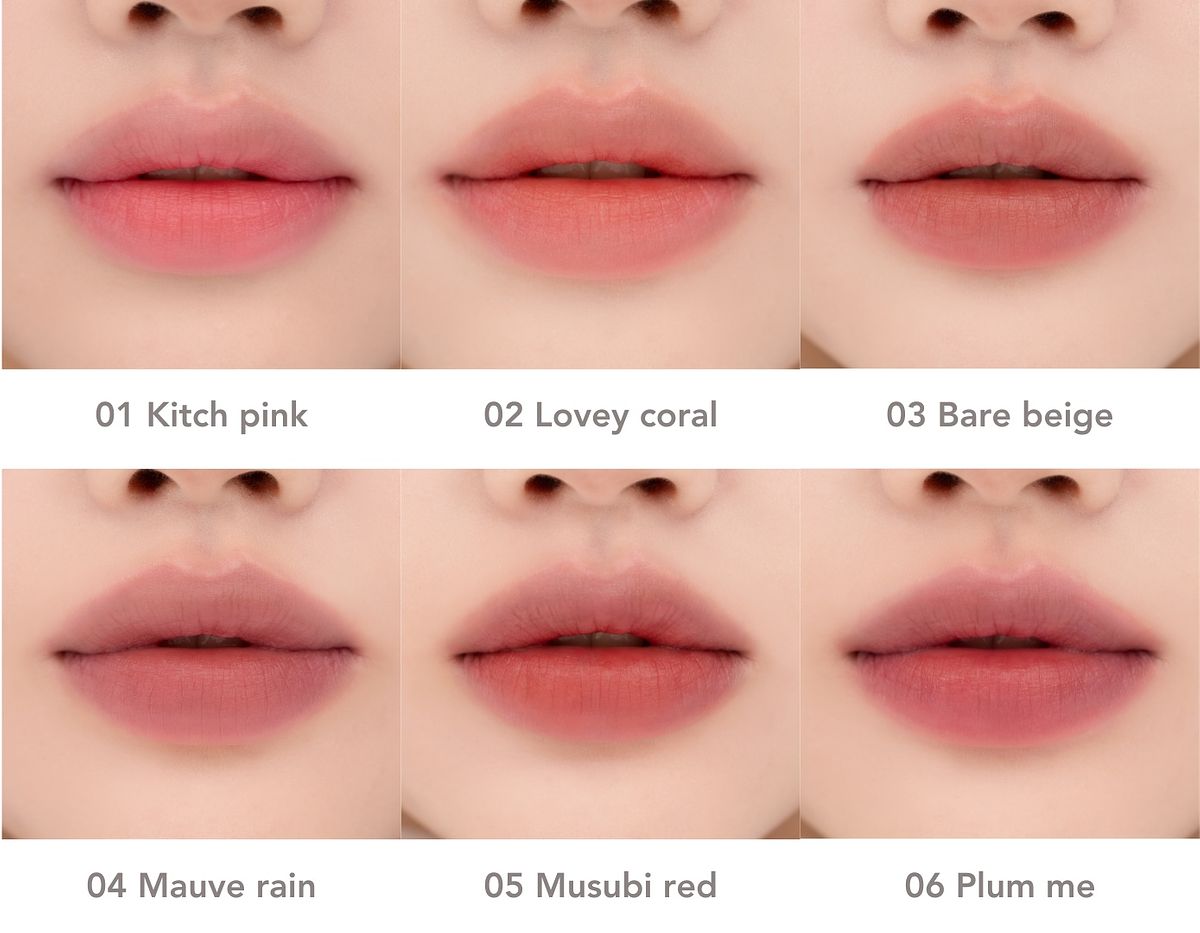 慕斯質地的唇釉霧面且透明,像是調入較多水分的水彩顏料,能與原生唇色自然融合,而且唇緣不明顯又看似漸層更顯年輕,它除了清爽服貼還不沾杯,不需頻頻補妝,再加上積雪草成分的優秀保濕效果,還能改善粗糙乾燥雙唇。
