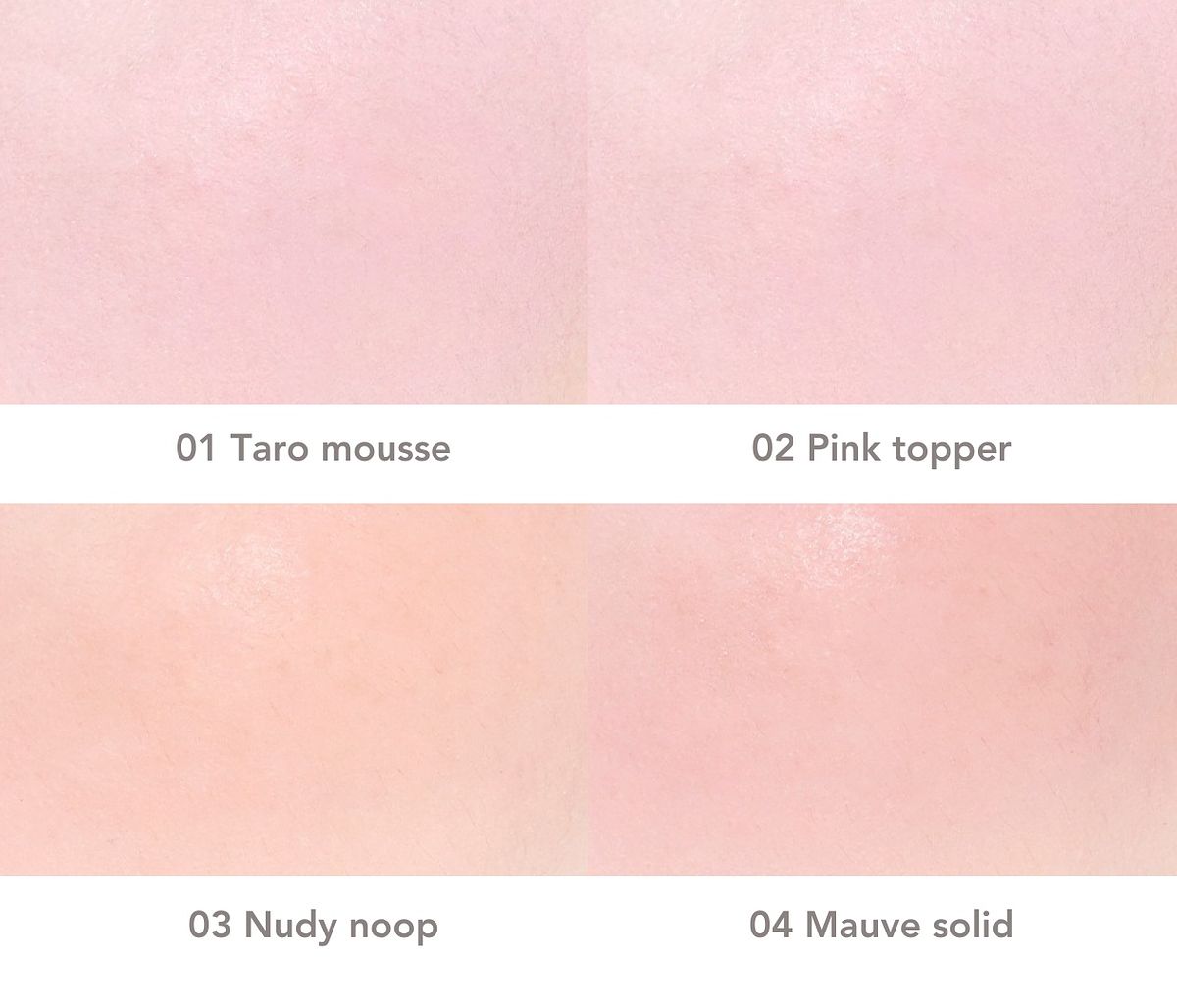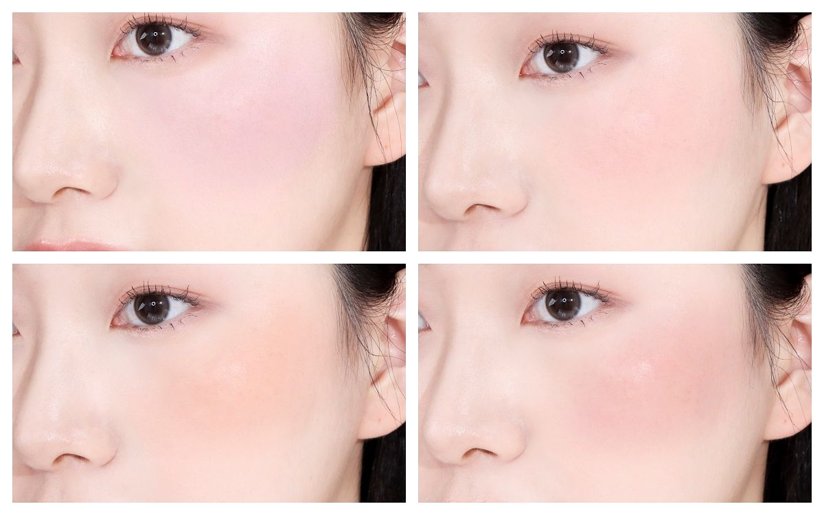 腮紅為水潤滑順慕斯質地,用指腹就很容易推勻,塗開後會快速轉化為乾爽霧面妝感,呈現柔霧光滑肌膚質感,使用上總是有障礙的人可試試這款。也因為質地轉換後很乾爽,所以還可以當眼影蜜使用。