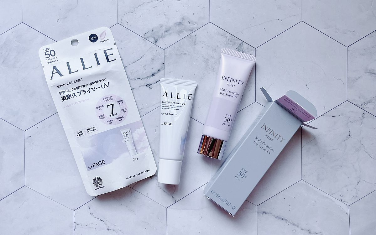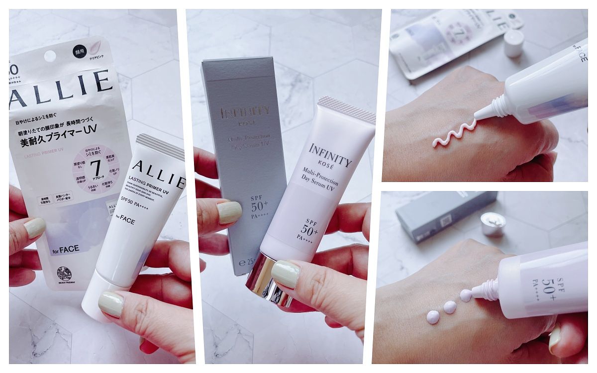 「ALLIE」這款臉部專用飾底乳有光感粒子,就算在粉底液後補擦、也能散發漂亮光芒,還有水潤薄膜超保濕,在日本是狂銷款。「INFINITY無限肌緻」除了無色透明款,也有推出紫色。而且這2款用完都有明顯提亮感,可直接出門。