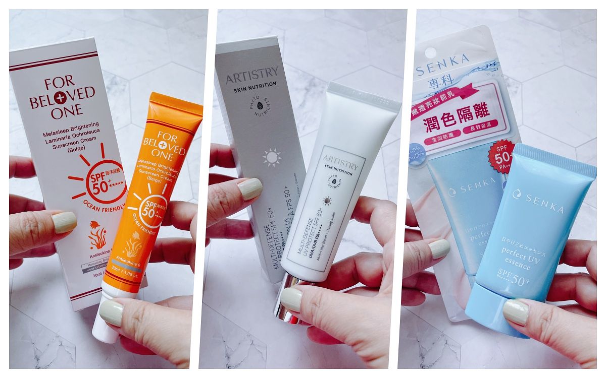 「寵愛之名」防曬為柔光膚色,而且是海洋友善配方,保養成分為橄欖油及海藻。「ARTISTRY雅芝」除了也是海洋友善配方,還因為添加滿滿植萃,被稱為“保養型防曬”。「專科」就直接叫潤色隔離乳來代表臉部專用,還添加宇治抹茶及雙重玻尿酸來抗老。