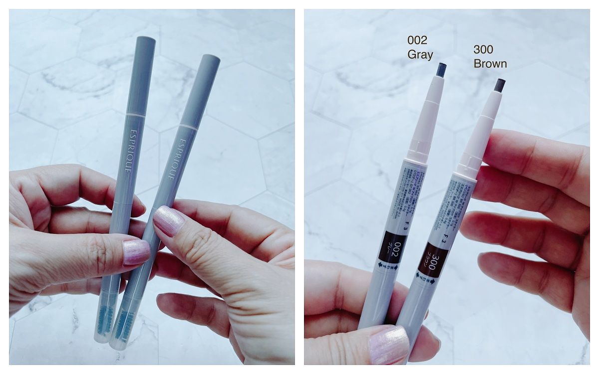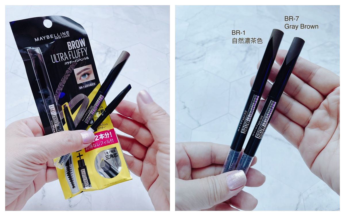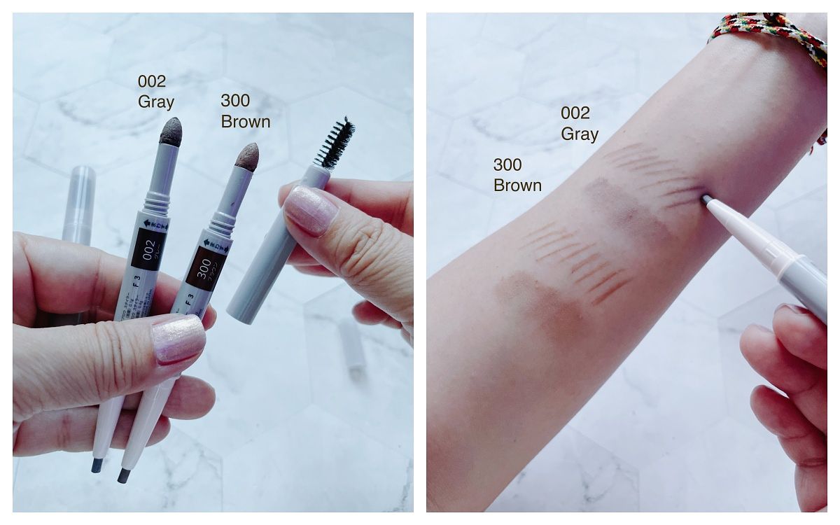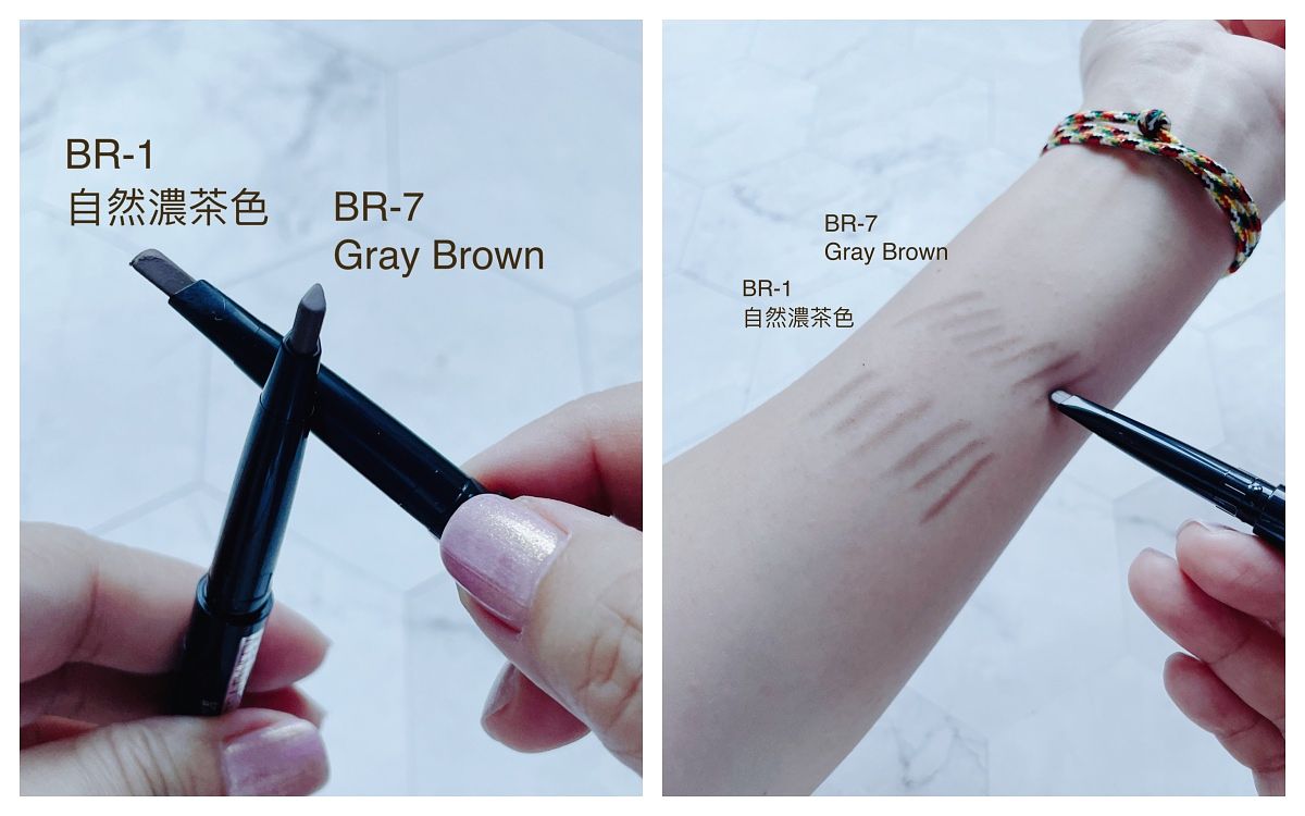 大推適合各種髮色的BR611深棕,黑髮就選GY951灰棕,淺色或亞麻髮色就選BR771淺棕。如果想要畫更細的毛流,可選筆芯才1.2mm的「細芯睛彩雙頭眉筆」。
