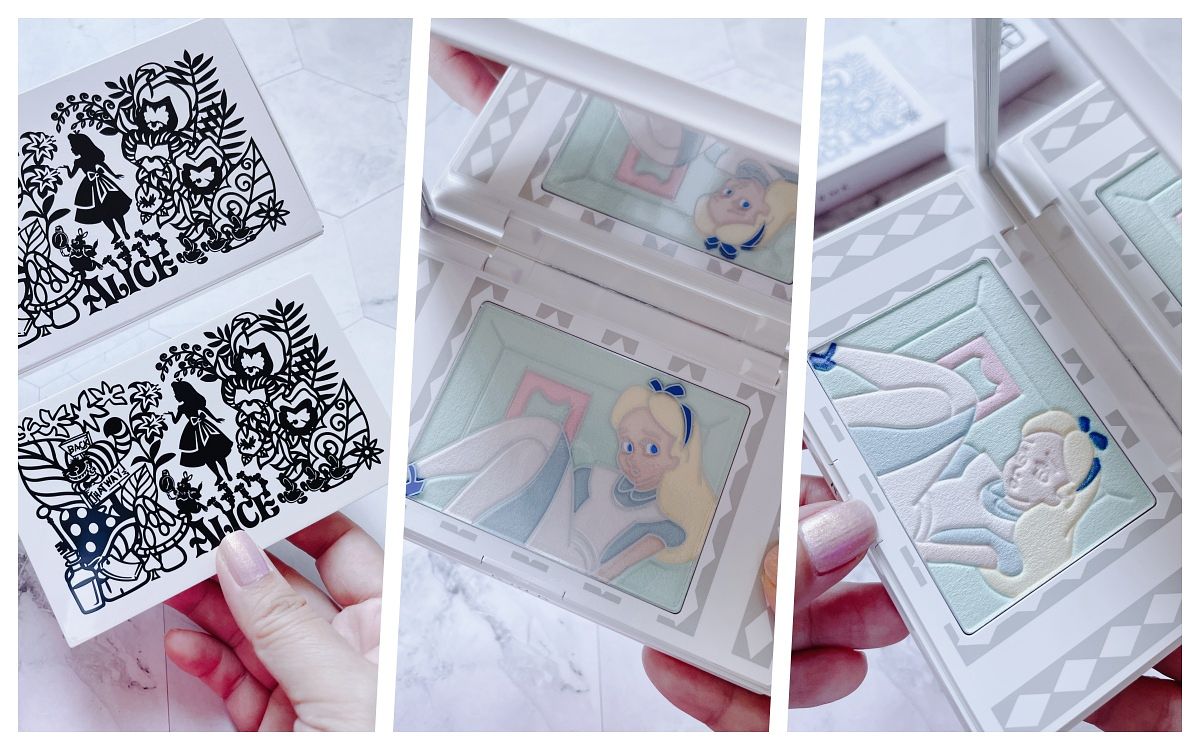 這粉盒歷史很悠久,是2016年6月推出的限定品,還記得當時美妝保養編輯們打開它時~驚訝又驚喜的表情,上面的透明片雖然畫了線條,但拿掉透明片後的粉餅色塊也好精緻,這畫面為愛麗絲喝了放大藥水時的那一幕!