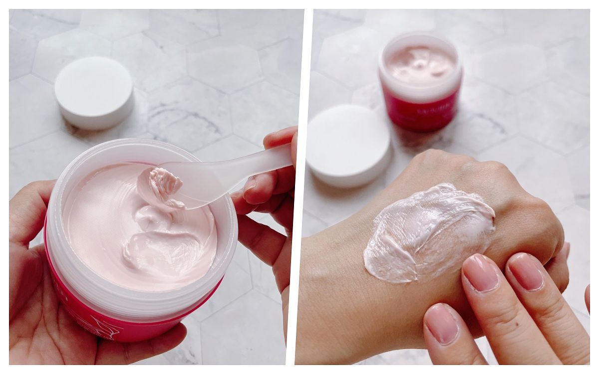 主要是成分中的「粉紅珊瑚」具肌膚緊緻特性,再加上能緊實平滑肌膚的「粉紅胡椒精華」,可特別針對微笑線等在意部位,另外空氣特別乾冷時,還可混合同系列美體油一起使用,讓肌膚更緊彈保濕。