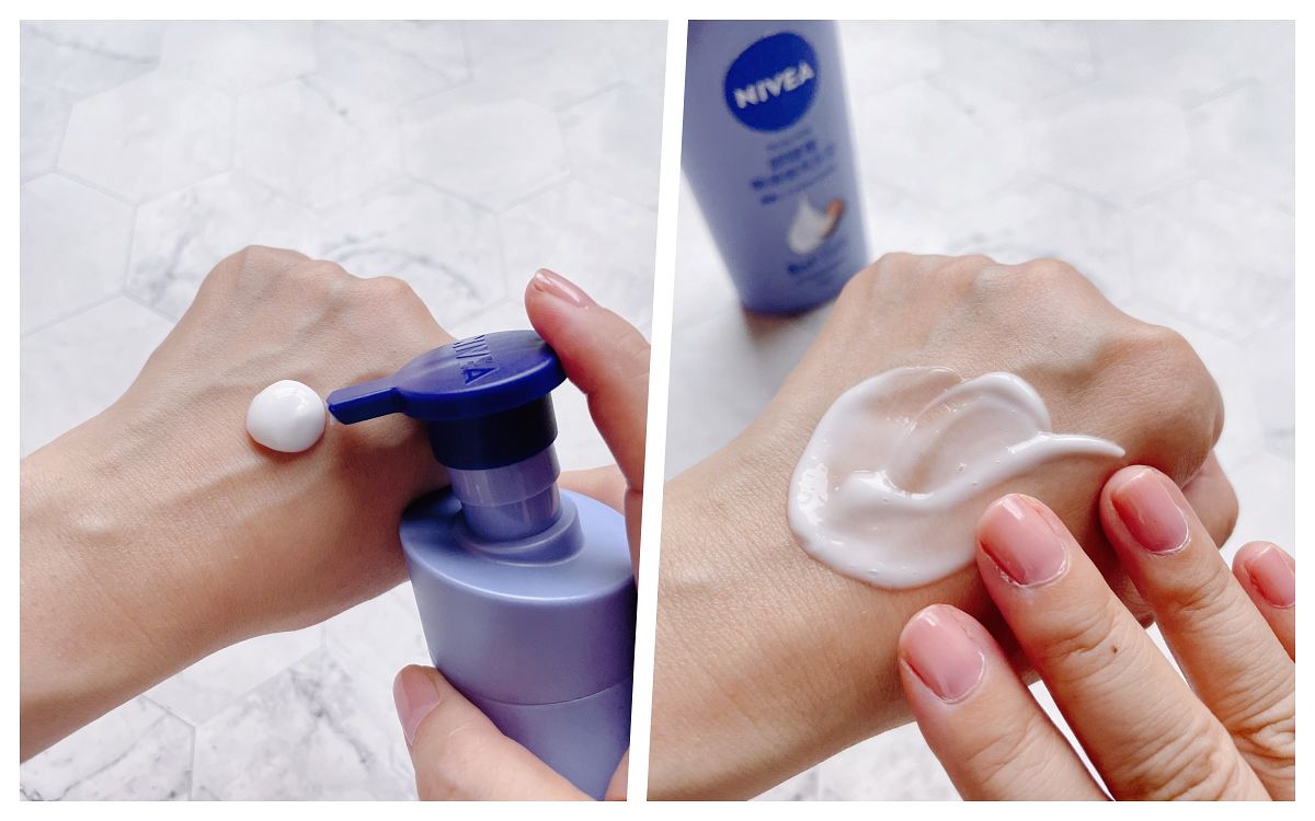 還真沒見過這樣的雙管設計身體乳,太適合台灣氣候了,使用時還要按照後面的指示按壓,內外管精萃凝乳才能一同擠出。外管的「修護精華液」是冰冰涼涼凝露質地,內含玻尿酸、維他命原B5、海藻醣,主要針對保濕功效。
