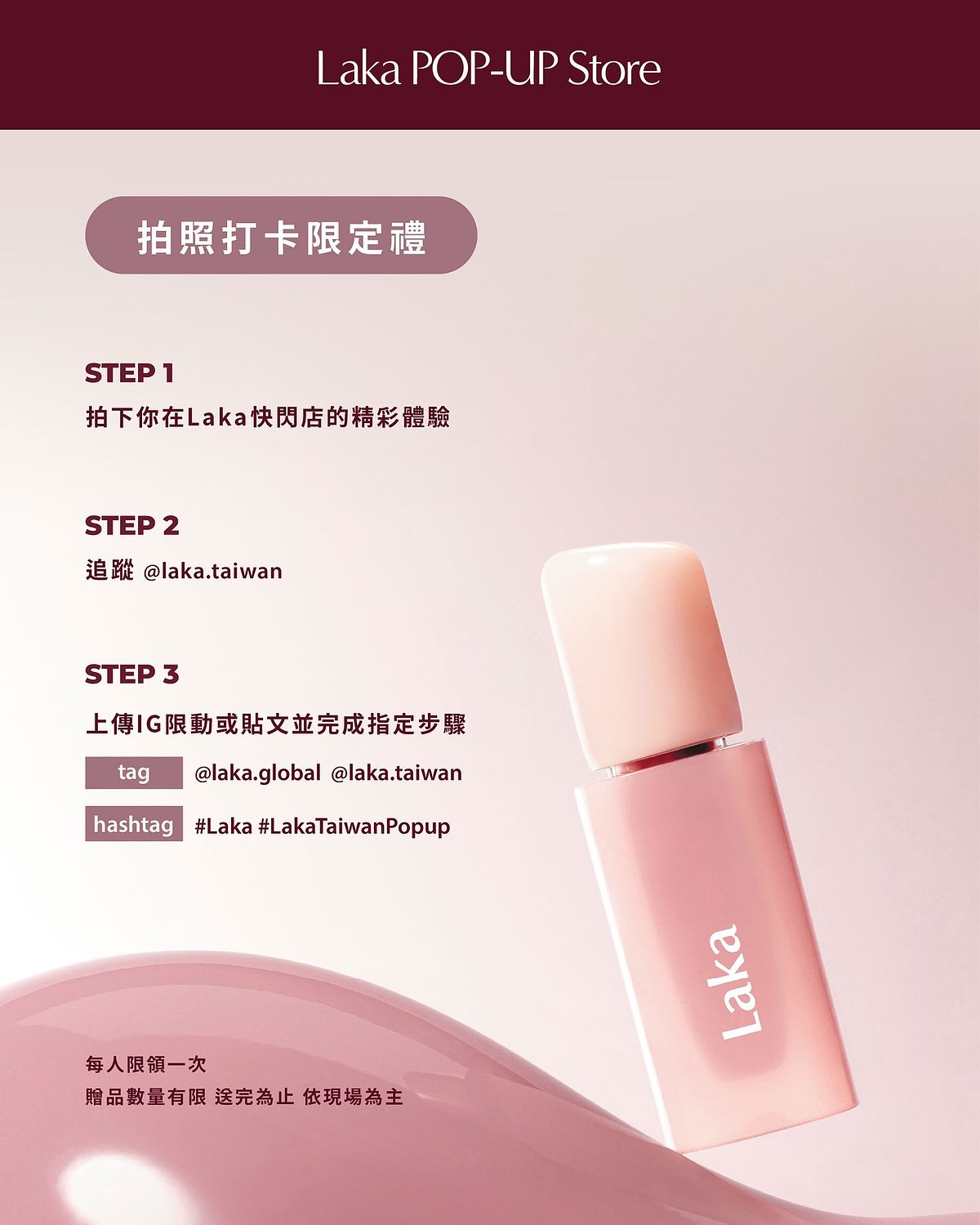 Hashtags:#Laka #LakaTaiwanPopup,完成即可兌換精美禮物!
