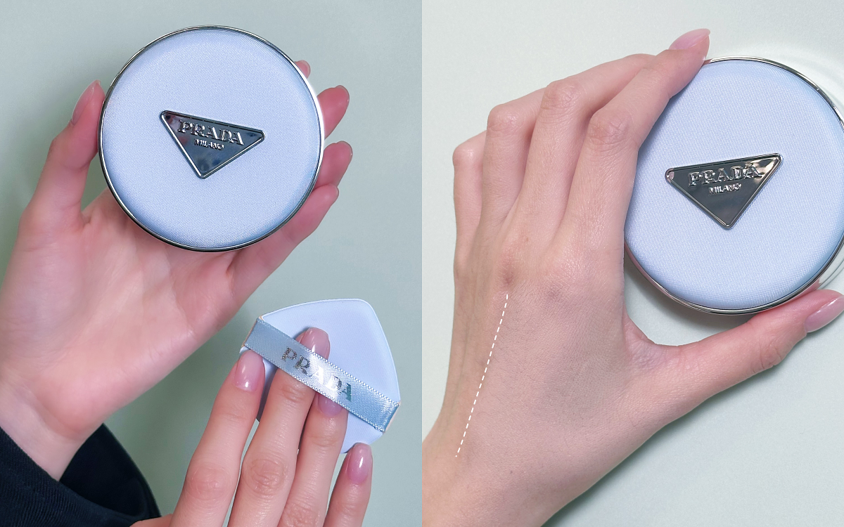PRADA 經典「原生霧光尼龍氣墊」寶寶藍「莫測藍尼龍氣墊粉餅」重磅上市!新品上市還送氣墊收納包!