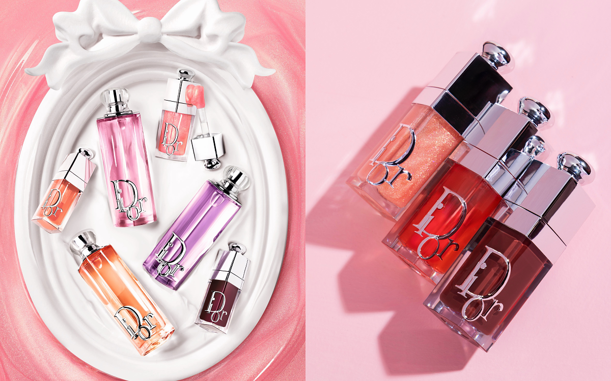 同步推出《迪奧粉漾水光潤唇釉》限量色選,揉合獨家「水漾潤色科技」,可隨肌膚 pH 值調整色澤,綻放專屬水潤光采,搭配天然「櫻桃油萃取」,打造令人無法抗拒的「蜜糖嘟嘟唇」。