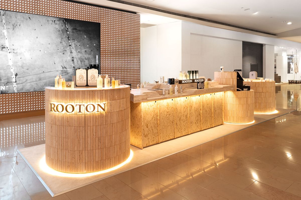 ROOTON 101 全新櫃位於 1 月 6 日正式開幕,以希臘神殿為設計靈感,透過金色光澤與希臘柱勾勒層次邊界,使光影在空間中自然流動。高低起伏的檯面設計,回應城市輪廓的節奏變化,引導行走動線,也引領感官逐步沉靜。透過品牌標誌性的天然植萃香氣,喚醒被日常塵封的感官,將「天然質感生活」從抽象理念轉化為觸手可及的溫潤體驗,讓每位客人在此邂逅最純粹的自我。