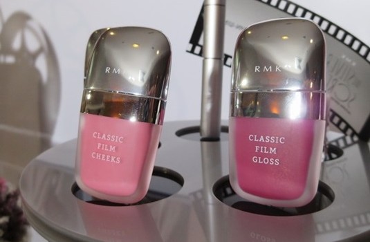 電影院門口有產品陳列,非常的電影,今年秋冬RMK彩妝靈感來自懷舊的膠捲,集合了古典的色彩與閃耀的質感,從眼、頰、唇、指尖無處不展現懷舊風格,連放映機、老相機都搬到現場,真的耶…這次的眼影、唇彩等都是一罐一罐的如同膠捲一格一格的感覺。