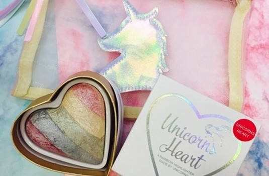 這陣子彩虹提亮餅從歐美夯到亞洲,不只是因為獨特的粉塊顏色受到大家注目,刷起來的質感與色調也意外的迷人。MAKEUP REVOLUTION也在這波趨勢推出了新品「獨角獸頰心(Hearts Highlighter Unicorns Heart)」。