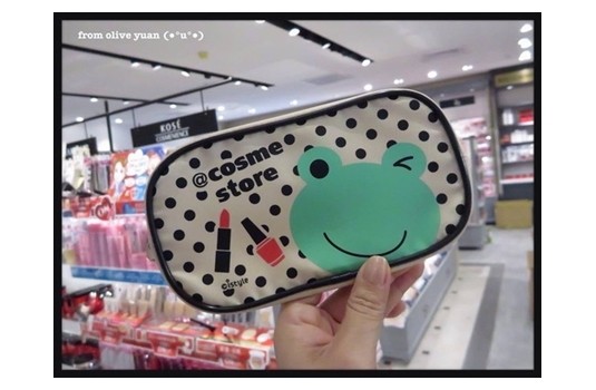 買買買~滿NT1500送MIKAERU @cosme store限定化妝包(只有200個,送完為止),還有機會在店裡面遇到他本人喔!可愛的青蛙!