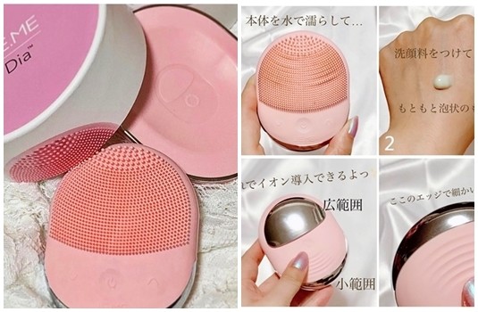 使用方式很簡單,1先沾濕機器,2擠出洗臉產品,3開啟機器進行清潔,4洗完後肌膚變得乾淨細緻,增添了透明感!(若每天使用建議震動強弱調到1~2;若是特殊清潔保養則建議震動強弱調到3~5)