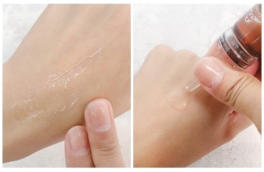 擠出後可以看到質地非常水潤,延展開來後很快就會被肌膚所吸收,使用後肌膚變得非常潤澤飽水,柔嫩到忍不住會想一直輕滑觸摸!