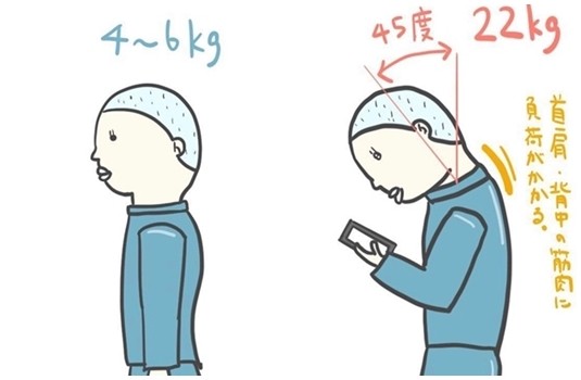 前傾烏龜頸除了不美觀,還會影響什麼呢?一般間頸承受頭部的重量約為4~6公斤,長時間低頭使用手機,肩頸及背部肌肉須乘載的重量,則高達約22公斤,長時間下來,除了養成前傾的烏龜頸,還引起腰痠背痛及肩頸痠痛的問題~因此,平常要多做矯正運動來改善才行!