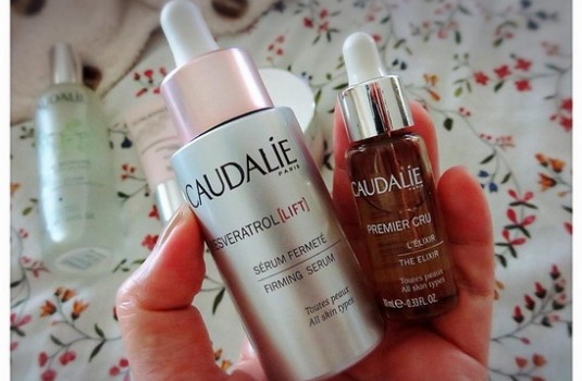 這次使用的產品是CAUDALIE的葡萄藤白藜蘆醇逆時緊膚精華液(它剛好是乳狀的),加上CAUDALIE葡萄籽尊貴時光逆轉全效精華油,2:1或3:1都可以。希望大家都因為開始使用美容油而容光煥發喔( ´ ▽ ‘ )ノ!