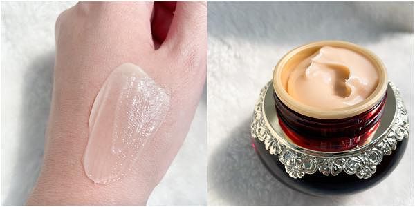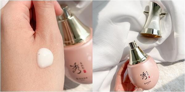 雖說是以人蔘為主要保養成分,但乳霜本身散發出的是淡淡草本人蔘香,絲毫沒有我們印象中的苦蔘味,淡粉色的乳霜在肌膚上滑開,柔軟又輕盈,就像在肌膚上形成一層滋潤卻不黏膩的薄膜,保護肌膚又提升滋潤度,摸起來像嬰兒肌膚的觸感柔嫩平滑。能做到效果保濕又能觸感清爽,但卻沒有一般乳霜的黏膩厚重感,真的是讓人一用就超級驚豔!