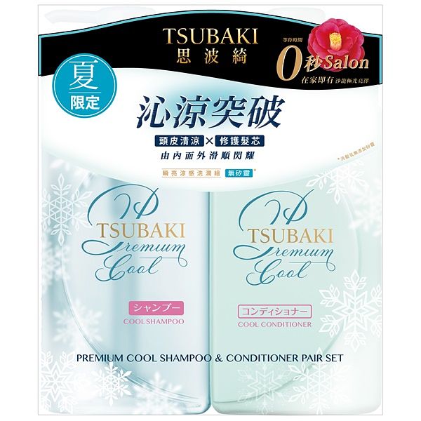 TSUBAKI思波綺夏季限定【瞬亮涼感洗潤組】打擊臭油頭清涼暢快、秀髮全天蓬鬆清爽