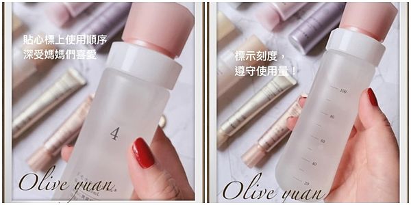 另外瓶身設計也進化囉!針對容器的顏色、文字標示等等,達到了更好的視覺及使用效果,試用套組也把使用順序的數字標在正面,關於使用順序這件事,真的是深獲婆婆媽媽們的好評,不是每個人都能搞清楚保養順序。