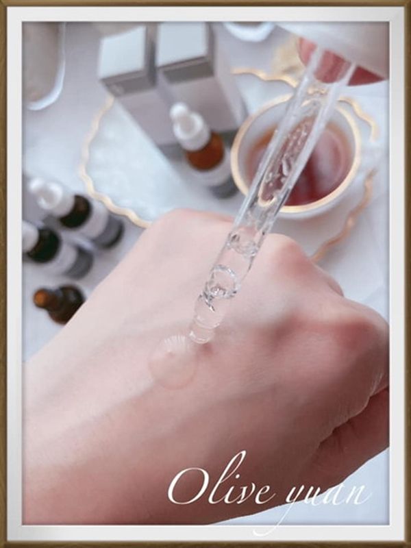 「Kira維他命C發光精華(發光瓶)」:經期前一週會在玻尿酸前使用,不讓肌膚黯沉無光,而且這是第三代喔!上面還有共同開發者簽名背書(權威配方師、頂尖級皮膚科醫師),讓我很安心。「左式右旋維他命C」有9%耶!而且無水配方讓維他命C更加穩定,也因為無水配方,使用時會有微熱感,呈現油相質地,所以只要用約1~2滴,但2~3分鐘後就會被肌膚完全吸收(驚!),另外還有淨白肌膚的「阿魏酸」、提升肌膚保護力的「維生素E乙酸酯」,及舒緩肌膚的「沒藥醇」,早晚使用,但白天請一定要搭配防曬乳!我好久沒用粉底液了,因為不想被遮住肌膚的光芒!
