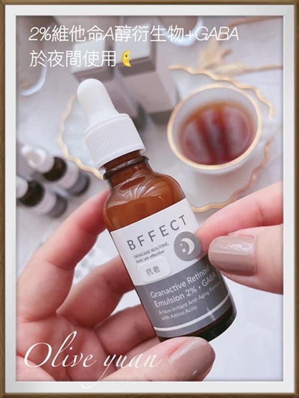 「2%維他命A醇衍生物+GABA(夜間抗老)」:我只要熬夜工作或壓力大時,肌膚就會產生疲態,這時就會加強使用這款精華液,而且我超愛“能防止肌膚老化、淡化紋路、恢復肌膚彈性”的「维他命A醇衍生物」,添加了2%!與玻尿酸搭配於夜間使用,另外搭配舒緩沒藥醇來降低A醇可能產生的不適,再加上能緊實的GABA,於玻尿酸精華後使用,接著睡上美容覺,隔天沒人看出我凌晨四點才睡,肌膚一樣精神滿滿。