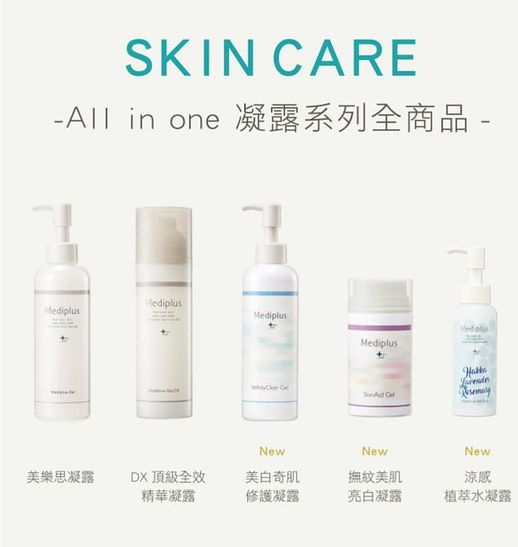 如果要送媽媽保養品,我覺得ALL IN ONE真的還蠻適合的,因為瓶瓶罐罐及複雜的保養流程,對媽媽來說真的不行!然後一轉眼~「Mediplus美樂思」小凝露現在居然有五種耶!因為之前針對熟齡乾性肌膚,特別推出成分升級版本「DX頂級全效保濕彈力精華凝露」,可能是因為亞洲女性太重視美白,現在又再推出兩款新品!而且也是品牌首次推出針對美白的保養品,包裝也很繽紛~!