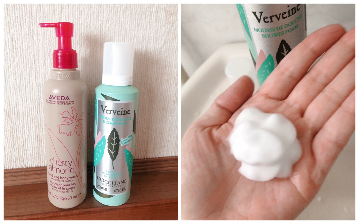 一直都蠻喜歡AVEDA的產品從頭髮到身體,這瓶甜馨沐浴乳洗起來肌膚清爽不乾燥,100%純淨花植,綜合38種花植萃取,我最喜歡其中融合了甜杏仁油味,洗後身體的香味不會過於濃郁喔!另外,夏天最需要降溫消暑類的產品,歐舒丹這瓶是新推出的馬鞭草沐浴泡,擠出來是慕絲狀泡沫,直接包覆身體肌膚達到清潔保養效果,洗後肌膚保濕不乾澀,清新的馬鞭草香氣聞起來馬上就消暑,洗完澡後感受到消暑的清爽感喔!